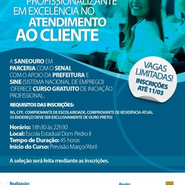 O curso de excelência no atendimento ao cliente possui carga horária de 45h e 30 vagas. Já o de encanador hidráulico tem a duração de 75h para uma turma de 20 alunos. As aulas ocorrerão nos meses de março e abril, na Escola Estadual Dom Pedro II.