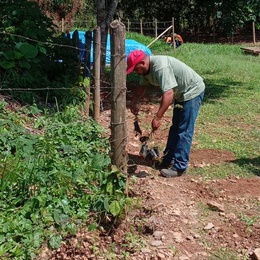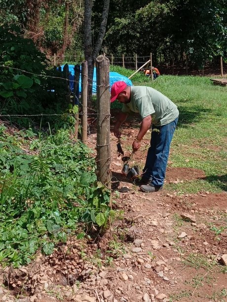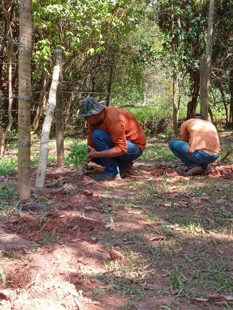 Alinhadas em fileiras no entorno do terreno, as mudas escolhidas farão uma cerca viva entre Sabiá Mirim, conhecida também como Esponjinha, e de Eucalipto Citriodora, que possui cheiro bem agradável.