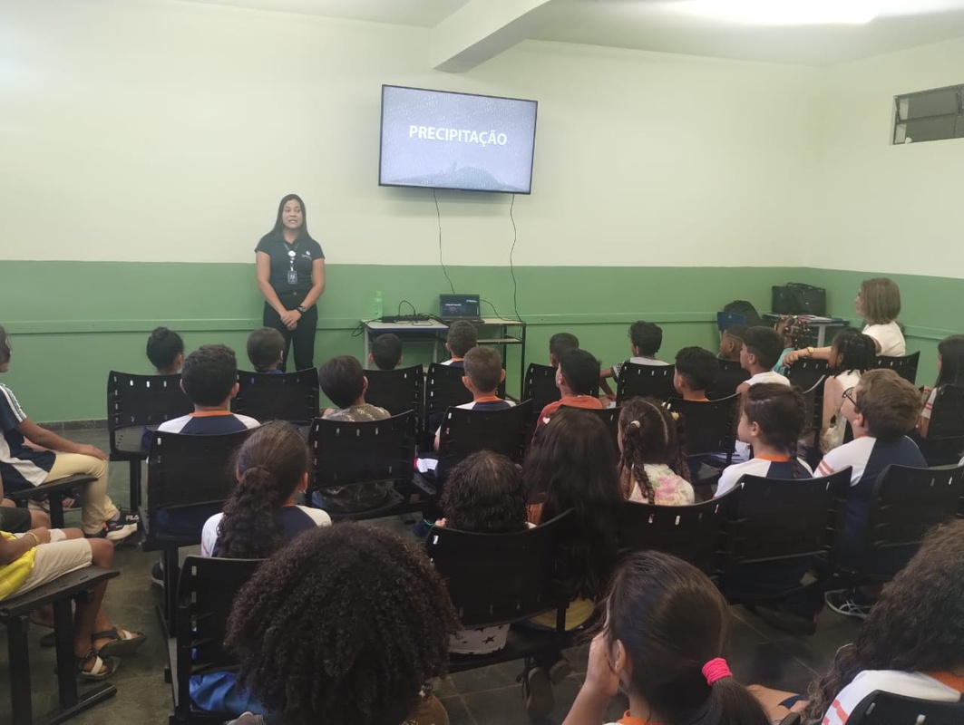 A tarde desta quarta-feira (08.11) foi diferente para as crianças da Escola Estadual José Leandro, no distrito de Santa Rita de Ouro Preto. A pedido da escola, a engenheira e analista administrativa da Saneouro, Flávia Pereira, conversou com alunos do 1º ao 5º ano sobre o ciclo da água, os processos de tratamento que a tornam potável e a importância do consumo consciente para preservação deste recurso que é essencial à vida humana.